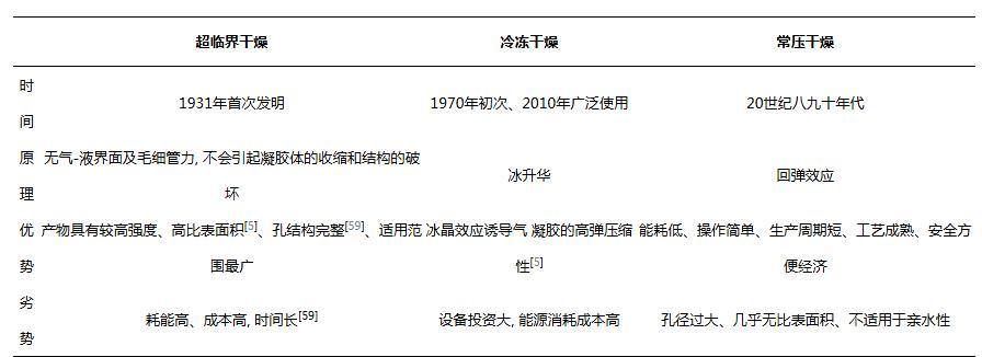 綜上所述,不同的干燥方法側(cè)重點(diǎn)不同,各具優(yōu)缺點(diǎn)。表1概括了三種常用干燥方法的發(fā)明時(shí)間、原理及優(yōu)劣勢(shì)。