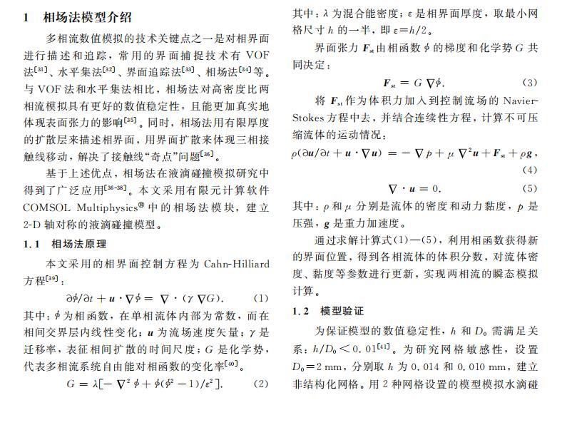 基于上述優(yōu)點,相場法在液滴碰撞模擬研究中得到了廣泛應用。本文采用有限元計算軟件COMSOL Multiphysics