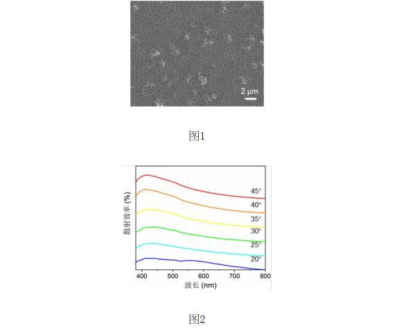 一種具有結(jié)構(gòu)色的材料,主要由透明的基底和均勻覆蓋在基底表面的單層的納米環(huán)陣列組成;在納米環(huán)陣列中,納米環(huán)以“平躺”的方式緊密排列,每平方毫米排列納米環(huán)的個數(shù)為800-2000個。該結(jié)構(gòu)色材料在透射條件下能夠呈現(xiàn)出隨著觀察角度變化的結(jié)構(gòu)色。