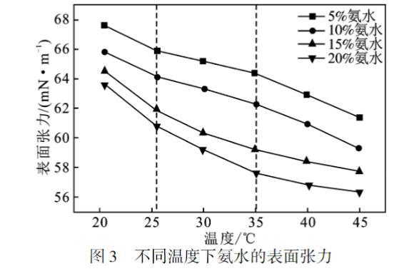 2.2 溫度對(duì)氨水表面張力的影響