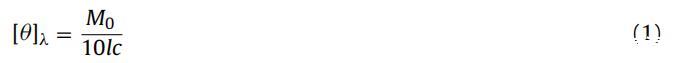 其中 θλ 是在波長(zhǎng)處觀察到的橢圓度(以毫度為單位) λ,M0 是蛋白質(zhì)的平均殘基重量,c 是蛋白質(zhì) 以克/立方厘米為單位的濃度,l 是細(xì)胞的光程長(zhǎng)度,以厘米為單位。 222 nm 處的橢圓度值 (θ222nm/mdeg)用于計(jì)算BSA的α-螺旋含量 使用 Morrisett 等人給出的以下等式。 [44]