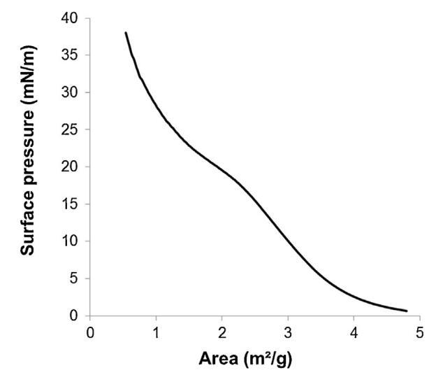 圖3。通過傳播精漿在空氣/緩沖液界面形成的單層的表面壓力面積(π–A)等溫線(n=3,標(biāo)準(zhǔn)偏差在0-18.9 mN/m范圍內(nèi)不超過1.5 mN/m,在18.9-38 mN/m范圍內(nèi)不超過1.2 mN/m)。