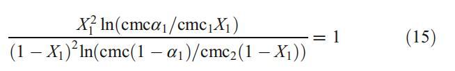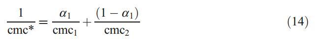 這些結(jié)果已通過(guò)使用規(guī)則溶液理論得到進(jìn)一步證實(shí),該理論不僅表征了混合膠束中的相互作用參數(shù)bmic 12,而且還解釋了與理想的偏差[32]。X1是膠束中DPS的摩爾分?jǐn)?shù),可根據(jù)以下方程式迭代計(jì)算: