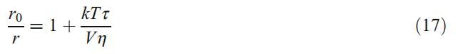 其中r0是在沒(méi)有旋轉(zhuǎn)自由度的情況下獲得的發(fā)射各向異性的極限值,k是波爾茲曼常數(shù),T是溫度,τ是熒光團(tuán)激發(fā)態(tài)的平均壽命,V是探針的有效分子體積,h是探針周圍的粘度。從等式17可以看出,r值越高,剛性越高,反之亦然。