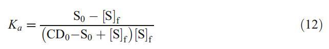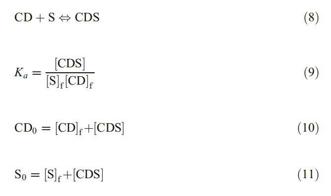 其中,CD/S、[S]f、[CD]f、CD0和S0分別為包合物、游離表面活性劑、游離CD、總CD和總表面活性劑濃度。通過(guò)組合和重新排列等式。9-11,我們得到了以下關(guān)系式: