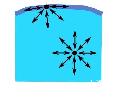 表面張力指的是流體表面會盡可能收縮的趨勢。微觀原理上是因為流體表面的分子密度比流體內(nèi)部的分子密度更為稀疏,因而表面分子之間的平均距離更大,所以分子間的相互作用表現(xiàn)為一種吸引力。從宏觀上來講,我們可以定義一個表面張力勢能: