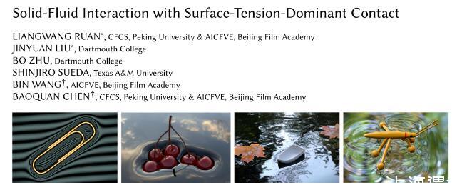 近日,在由北京大學陳寶權(quán)教授研究團隊與北京電影學院未來影像高精尖創(chuàng)新中心、達特茅斯學院、德克薩斯農(nóng)工大學合作的論文《Solid-Fluid Interaction with Surface-Tension-Dominant Contact》中,作者們提出全新的模擬框架處理帶表面張力的流固強耦合,能夠精確模擬各種與表面張力相關(guān)的物理過程。