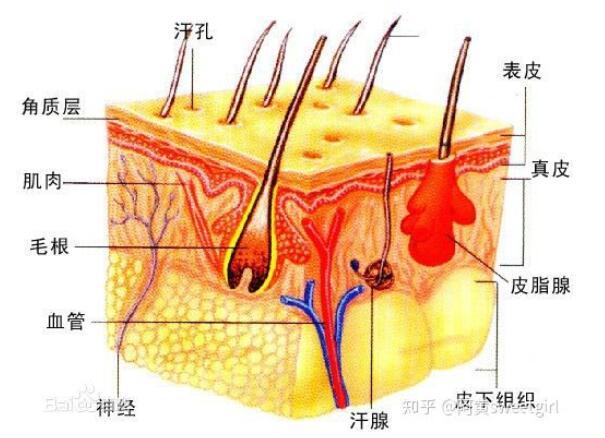 下面我們來(lái)分析皮膚的結(jié)構(gòu)。皮膚的結(jié)構(gòu)如下圖所示: