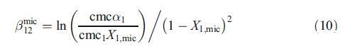 這些結(jié)果可以通過使用規(guī)則溶液理論(RST)得到證實(shí),該理論不僅表征了混合膠束中的相互作用參數(shù)bmic 12,還解釋了偏離理想狀態(tài)的原因[20]。根據(jù)RST,混合膠束中的活性系數(shù)表示如下: