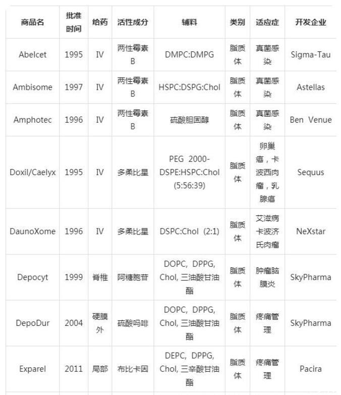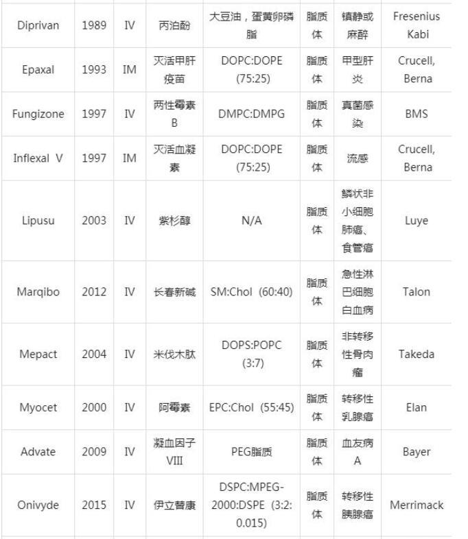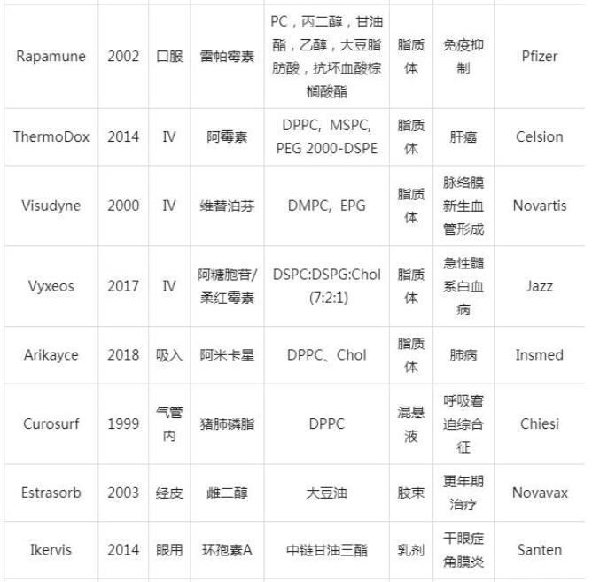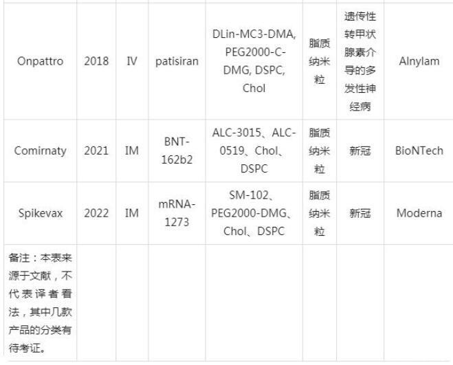 表1已獲批上市的脂質(zhì)納米粒產(chǎn)品