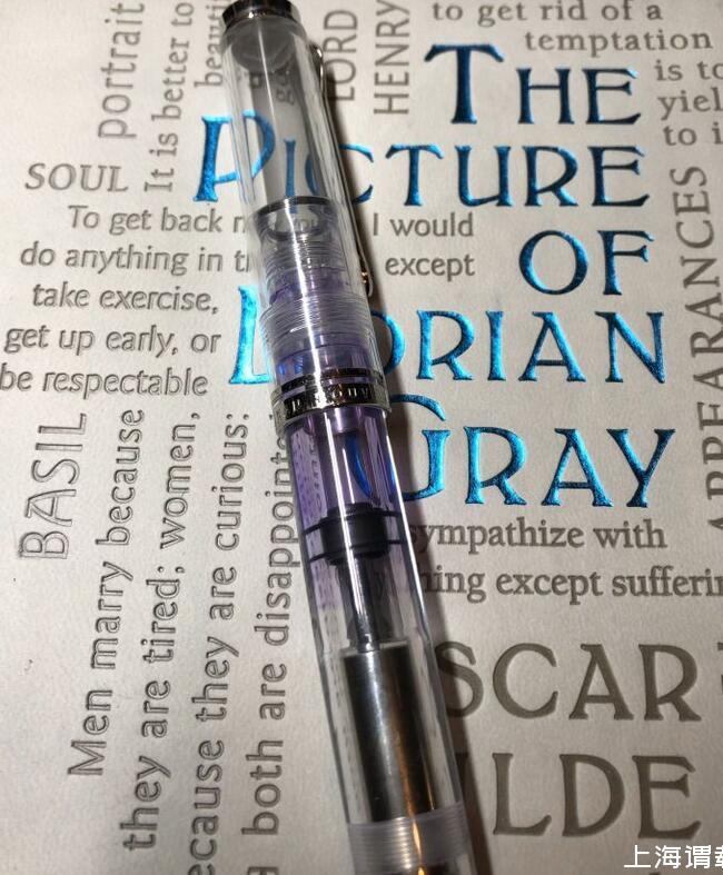 也有一些墨水是你以為洗干凈了,但用著用著還是能從犄角旮旯里蹦出來一些的:比如添加了金粉銀粉的,附著力特別強(qiáng)的(直接滲進(jìn)了樹脂的墨囊中)。如果不信邪的話可以考慮拿一支示范筆,洗不洗得掉就一目了然了——當(dāng)然也有一定的風(fēng)險,見下圖: