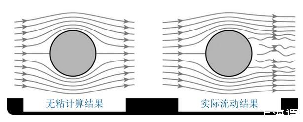 歐拉提出歐拉方程后不久,人們就認識到方程中缺乏粘性項,這會導致歐拉方程的計算結果和實際產(chǎn)生偏差,比如大家熟知的達朗貝爾佯謬。下圖顯示了理想流體和實際流體下圓柱繞流的對比,可以看出,無粘流動的結果和實際存在很大的差異。因此,如何在流動方程中添加粘性項成為了跨越百年的流體力學難題。