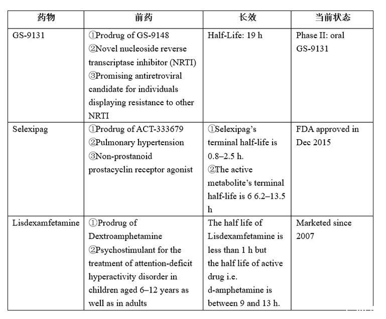 前體藥物是活性藥物分子的無活性或活性較低的生物可逆轉衍生物,在產(chǎn)生藥理作用之前,需要經(jīng)過酶或生物轉化。前藥策略提高了許多分子的性能,它有助于增強口服給藥后的藥物吸收以及穩(wěn)定性。前藥在市場中一直占據(jù)著一席之地,而且發(fā)展迅速,以下為FDA批準的一些長效前藥: