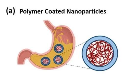 納米顆粒的高表面積體積比,提高了藥物的溶解性和穩(wěn)定性。納米粒的粒徑范圍一般為100~1000nm。藥物可以被包裹在納米顆粒中以獲得持續(xù)釋放,進而保護藥物,免受劇烈的pH值變化和胃腸道惡劣的酶環(huán)境的影響。納米顆粒的大小、形狀、表面電荷會影響藥物的藥代動力學。