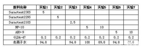 結(jié)合實驗1、實驗2的實驗可以明顯看出特種表活在除重油垢時的效果可以達到一個較普通常規(guī)表面活性劑更優(yōu)異的效果,尤其是在常溫、常壓、低濃度清洗時,作用尤為明顯。在金屬清潔劑、金屬表面處理劑的實際應用中上述的多種特種表活可以直接應用于替代常規(guī)的NP類、AEO類表面活性劑,進行使用。