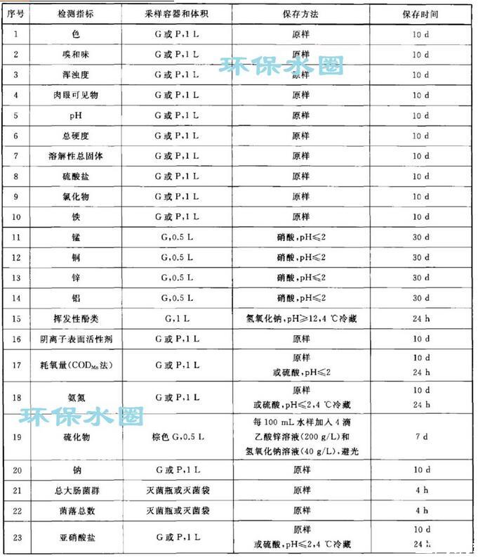 地下水質(zhì)量檢測(cè)指標(biāo)推薦分析方法