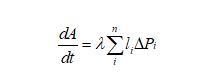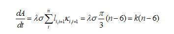 下面我們推導(dǎo)二維泡沫的演變方程,由于任一氣泡跟周圍氣泡的氣體交換都是通過氣泡邊界進行的,則氣泡體積(二維氣泡用面積表示)隨時間的變化率跟邊界長度和邊界上的壓強差都有關(guān)系,可以表示為