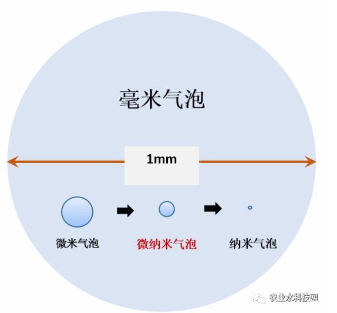 通常我們把氣體在液體中的存在現象稱作氣泡。氣泡的形成現象,在自然界中的許多過程中都能遇到,當氣體在液體中受到剪切力的作用時就會形成大小、形狀各不相同的氣泡。目前,對氣泡的分類與定義并不是十分嚴格,按照從大到小的順序可分為厘米氣泡(CMB)、毫米氣泡(MMB)、微米氣泡(MB)、微納米氣泡(MNB)、納米氣泡(NB)。所謂的微納米氣泡,指在發(fā)生時,直徑在1-50微米的氣泡為微米氣泡,直徑1微米以下的氣泡為納米級氣泡,兩者統(tǒng)稱為微納米氣泡。在水中通常外觀表現為乳白色。