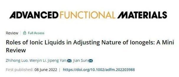 北京理工大學(xué)生命學(xué)院綠色生物制造課題組在國(guó)際頂級(jí)期刊《Advanced Functional Materials》(影響因子18.808)發(fā)表題為《Roles of Ionic Liquids in Adjusting Nature of Ionogels:A Mini Review》的綜述,文章綜述了離子液體在調(diào)控離子凝膠的結(jié)構(gòu)和性能方面發(fā)揮的作用。該文章通訊作者為閻繼鵬副教授和孫劍教授,第一作者為北京理工大學(xué)生命學(xué)院2020級(jí)碩士生羅志鴻。