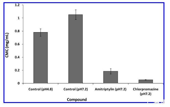 在本報告中,我們描述了一種用于測定CMC的替代方法,因此與langmuir平衡方法相一致,藥物的磷脂生成潛力。我們使用熒光染料探針通過短鏈脂質(zhì)的CMC變化來測量藥物脂質(zhì)復(fù)合物的形成。一些熒光染料探針長期以來一直用于測定CMC,28,29包括脂質(zhì)30,31,這是基于影響染料探針熒光發(fā)射的膠束形成后的微環(huán)境變化。所需的儀器是大多數(shù)生物學(xué)和生物化學(xué)實驗室都有的熒光讀板儀。