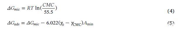 盡管對于是否應(yīng)該修改Gibbs分析存在一些爭論[19,20]。ΔGads和ΔGmic是由Rosen的方法計(jì)算得出的: