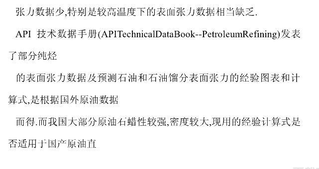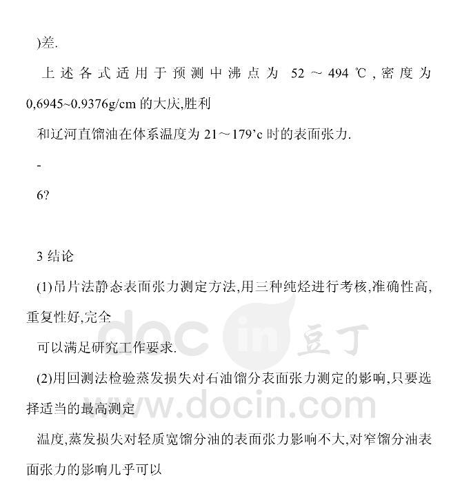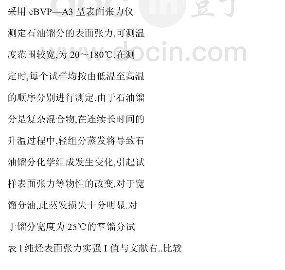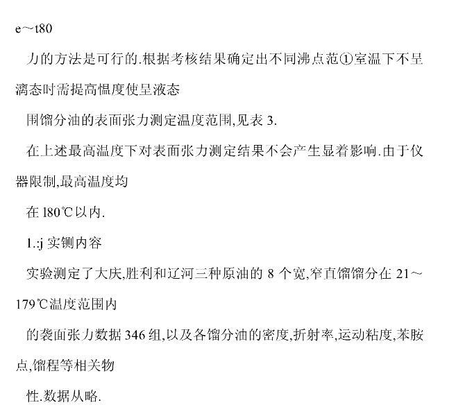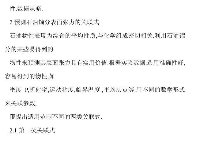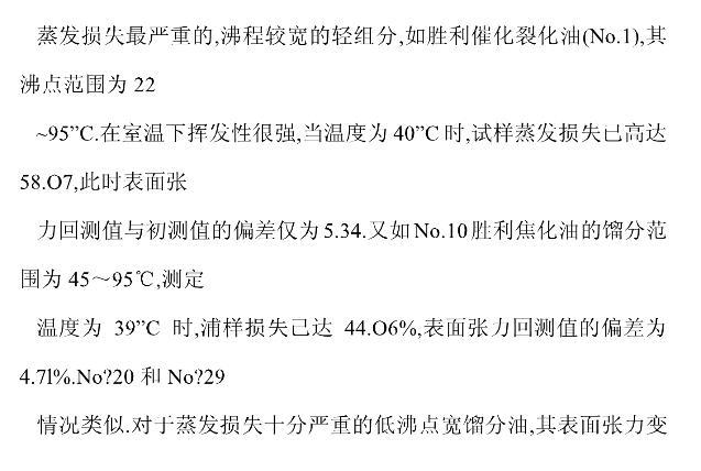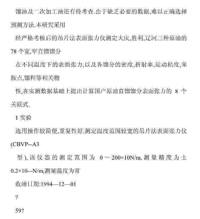 【摘要】:確定并建立了石油餾分靜態(tài)表面張力的測定方法,并用吊片法表面張力儀及三種純烴考核了儀器的準(zhǔn)確性,建立了回測法以考核試樣蒸發(fā)損失的影響。實側(cè)了大慶、勝利和遼河三種原油直餾餾分在不同溫度下的表面張力及相關(guān)特性。提出兩類實用范圍不同的預(yù)測國產(chǎn)石油餾分表面張力關(guān)聯(lián)式,其平均相對偏差分別為1.17%~1.26%和1.77%~2.77%,可滿足一般工藝要求。