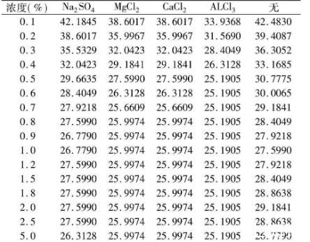 表4不同價態(tài)離子添加劑對黃花敗醬皂甙水溶液的表面張力的影響σ×10-3(N·m-1)