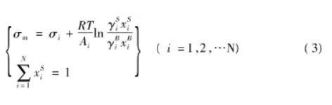 大多數(shù)關于液體混合物表面張力的描述都是建立在將液體表面層看作是一個氣液相之間的獨立的體系的假設之上的,基于這一假設,結合經典熱力學理論,可導出關于液體混合物表面張力的計算公式Bulter首先于1932年從熱力學理論出發(fā),導出液體混合物表面張力的理論公式: