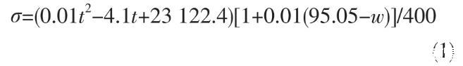 表面張力與物質(zhì)的性質(zhì)相關(guān),也是物性之一。液體分子間作用力越大,表面張力越大。由于氫鍵的存在,水分子間作用力很大,所以水的表面張力較大。硫酸的表面張力也不小,在20℃下,w(H2SO4)95%硫酸表面張力是水的80%左右。硫酸溫度提高,表面張力略有減小,但減小的速率比水要慢得多。隨著硫酸濃度增大,表面張力逐漸減小。對于濃硫酸而言,表面張力可用式(1)計算: