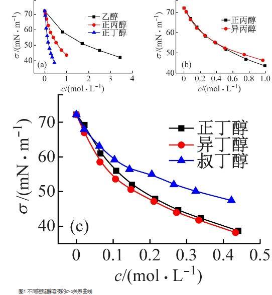 6種短鏈醇溶液分子結(jié)構(gòu)對(duì)表面張力和表面吸附性能的影響