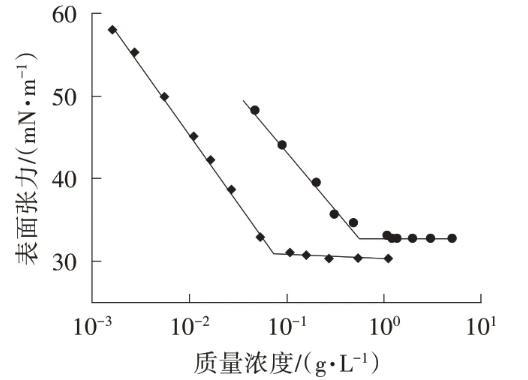 圖1煤基C10~13MADS及2A1的表面張力曲線